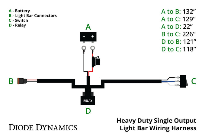 This harness is designed to power Diode Dynamics Stage Series light bars and LED pods without backlighting.