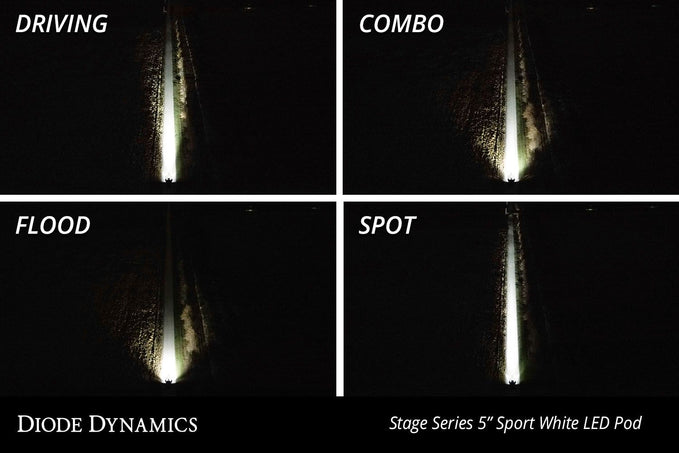 Driving is great for general illumination at speed. Rather than a traditional "spot" pattern, the Stage Series Driving pattern shines in a 30x20 degree spread, providing just enough width to fully illuminate the road ahead at high speeds, but still staying focused to avoid too much foreground light. Although the SS5 Driving is too bright to be considered an SAE Auxiliary High Beam, it is perfect for an extra boost of light at speed.