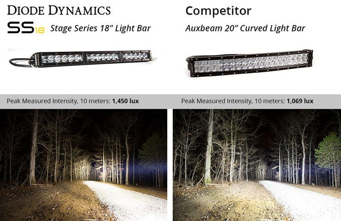 The Driving pattern was designed to supplement your high beams. Rather than a simple "spot" pattern, the Stage Series Driving pattern has a rectangular 20Wx8H degree pattern that is far more useful for directing light downrange at high speeds.